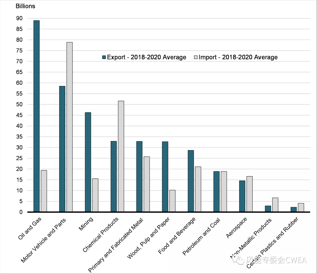 但更广泛的边境碳调节税的威胁——尤其是来自美国的——可能对加拿大高度暴露于贸易的工业部门产生重大的直接宏观影响。加拿大八个主要行业创造的经济价值有一半以上用于出口。