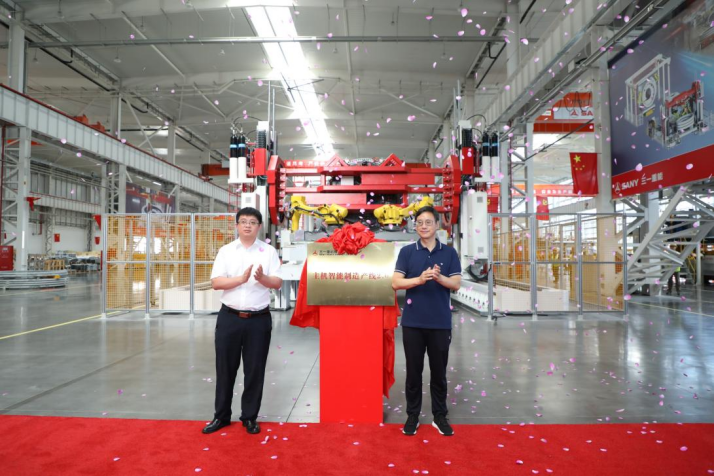 三一重能董事长周福贵(右)、三一重能总经理李强(左)共同为产线揭牌