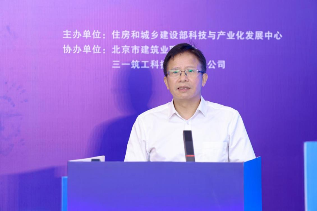 住房和城乡建设部标准定额司副司长白正盛、建筑市场监管司副司长廖玉平,住房和城乡建设部科技与产业化发展中心副主任武振,三一集团总裁助理马云飞出席会议并致辞。浙江省嘉兴市住房和城乡建设局副局长朱斌,北京市住房和城乡建设委员会科技与信息化处副处长张晋波、北京市建筑业联合会副秘书长张奎波等领导和专家参加会议。会议由住房和城乡建设部科技与产业化发展中心产业发展处处长刘美霞、村镇建设与人居环境处副处长赵华主持。