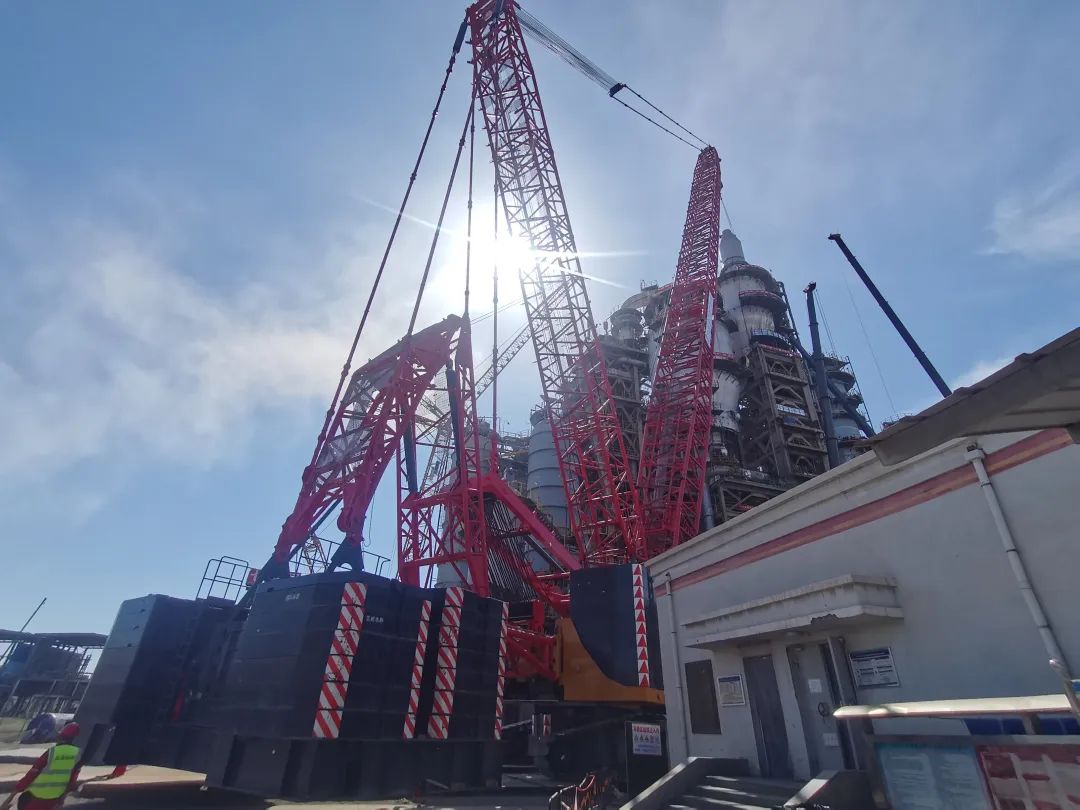 寰球七建1250吨履带吊在宁夏石化2024年炼油装置大检修项目, 完成260万吨/年催化装置沉降器二反吊装。