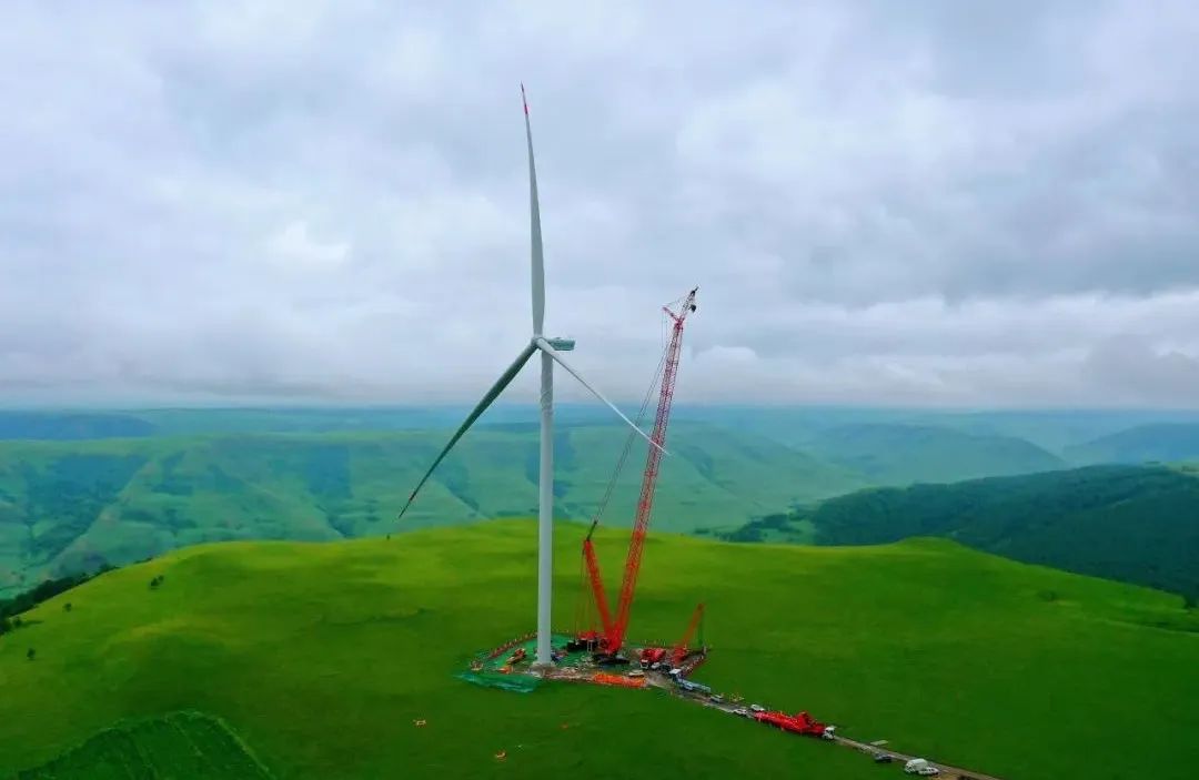 中国能建山西电建内蒙古赤峰克旗兴龙20万千瓦风电项目,完成全国首台最大单机陆上风电机组吊装。