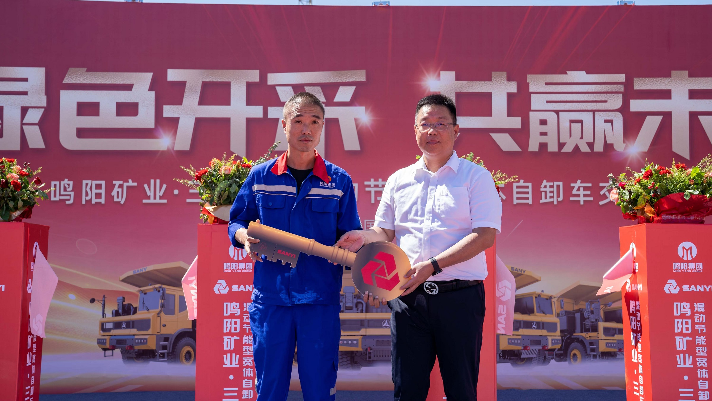 8月16日11:58分,鸣阳矿业三一重装混动节能型宽体自卸车交付仪式在新疆哈密伊吾县广汇白石湖露天矿广场举行,鸣阳矿业集团伊吾分公司总经理姚红利先生、设备副总经理韩治海先生、项目经理柴小均先生、三一重装服务支持部部长徐健先生、新疆分公司总经理武会宗先生等领导出席了本次活动,同时受邀到场的还有新疆区域的部分客户代表。