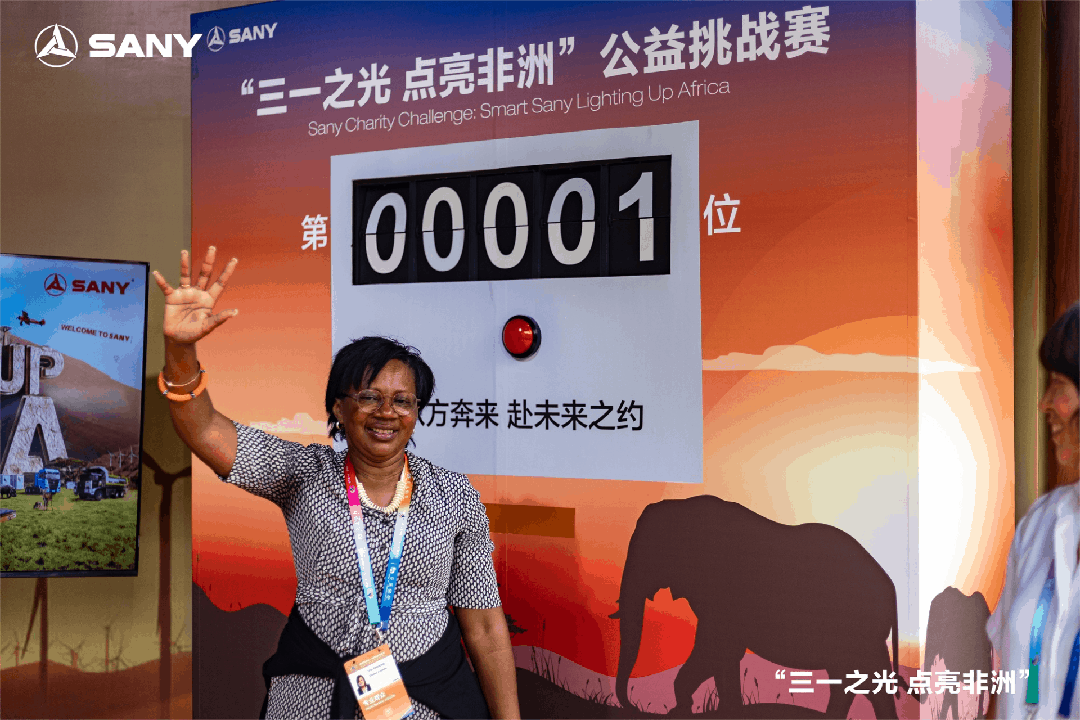 展会现场,三一集团、三一基金会发起"三一之光,点亮非洲"公益挑战赛,参与者完成提水任务,即向非洲缺电地区捐赠三一光伏小台灯(共1000个)。这场温暖互动,迅速吸引了来自各国的观众积极参与,为非洲儿童照亮希望之路。