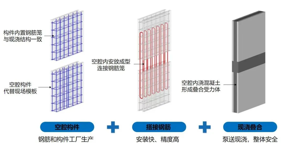 SPCS结构技术体系:基于“空腔墙柱·等效异构·边角后浇·面内作业+工业化机电·装配式装修”的技术路线,依托筑享云平台,在线协同设计、生产、施工端数据,数据驱动流水线智能生产,达到工业级制造品质。相较于欧洲双皮墙体系,SPCS结构技术体系取消钢筋桁架,钢筋用量更省;整体成笼,结构更安全;墙柱梁钢筋构造一体化,工厂生产智能化;具有构件重量轻、防水性能好、墙面免抹灰、表观质量好的特点,实现结构即建筑。