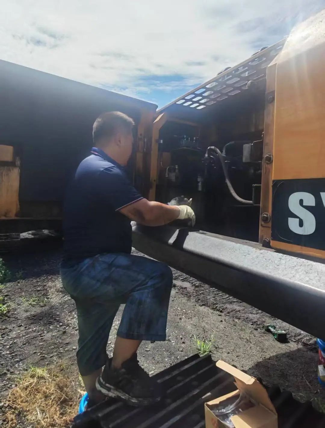 “必须让设备在最佳状态下运行,更要让师傅们在舒适环境中作业。”带着这样的信念,服务团队迅速制定维修方案。拆解、清理、更换部件、调试运行……在40多度的维修现场,工程师们汗流浃背却毫不停歇,最终在4天内高效完成了17台三一设备(含挖掘机与装载机)及5台友商装载机的维保工作,不仅解决了空调故障,更对设备核心部件进行了全面养护,确保每一台设备都能在高温考验下稳定运转。当驾驶室里的凉风重新吹拂,司机们竖起的大拇指,便是对这份服务最生动的认可。