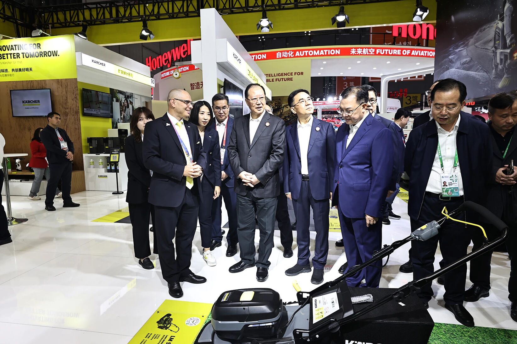 毛伟明还来到技术装备展区的德国卡赫展位,介绍我省装备制造产业发展情况,希望企业把湖南作为战略布局的“下一站”,加大资金项目投入,加强产业配套互补和科技协同创新,共享发展成果。