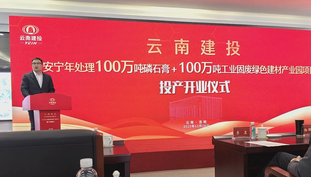 11月28日,云南建投集团投资的“安宁年处理100万吨磷石膏+100万吨工业固废绿色建材产业园项目”隆重举行投产开业仪式。