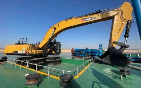 如果水再深一点怎么办?别担心,三一还有 “船挖套装” ——直接把挖掘机请上船,变身水上作业平台!安装灵活,总有一款适合你的船。