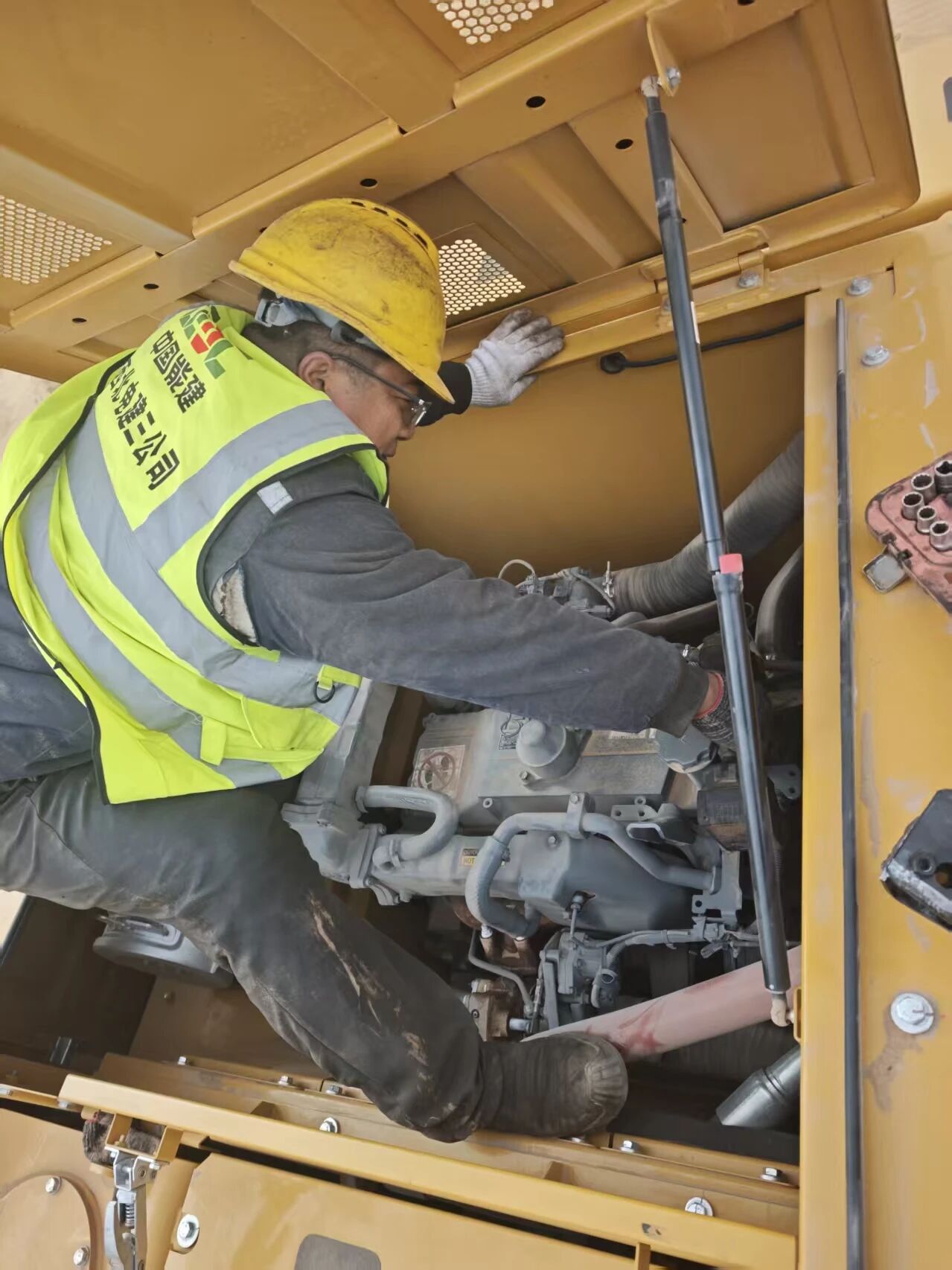 客户几次想上前帮忙,都被郭峰婉言劝回。半个多小时后,当郭峰站起身时,浑身已被沙尘裹满,嘴唇干裂得渗出血丝。随着挖机轰鸣响起,散热风扇平稳运转,危机成功化解,郭峰才长长舒了口气,露出疲惫却欣慰的笑容。“这么大的风沙,你真是救了我的工期!” 客户紧紧握住他的手,感激之情溢于言表。郭峰从包里掏出保养手册,细心叮嘱:“矿区粉尘大,记得每周检查一次支架紧固情况,有任何问题,随时联系我!”