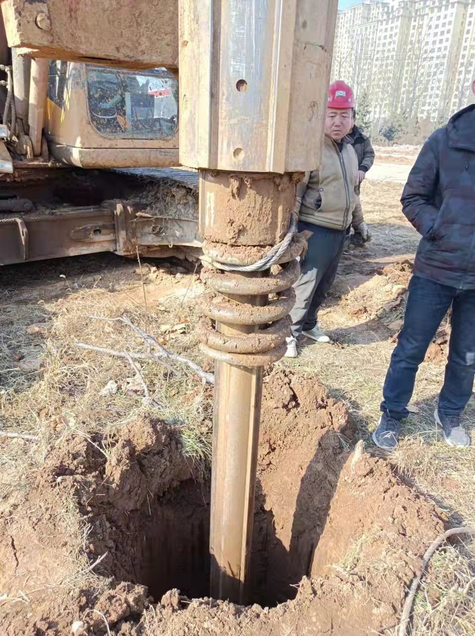 在20211117日,客户设备出现故障,由于工期紧迫,客户一个电话接一个电话询问怎么处理。服务工程师翟红权一边电话安慰客户,初步告诉客户故障原因,并第一时间出发到达工地。路上咨询库管配件情况,库管告知主卷扬减速机无现货,发物流需要三天。到达工地后,客户告诉工期比较紧还剩下200根桩,项目要求必须121日桩基础结束,客户两台设备施工1415/天,晚上不能施工。经过现场与客户协商,先把钻杆打捞出来,前期工程做好等待主卷扬减速机专车发运。