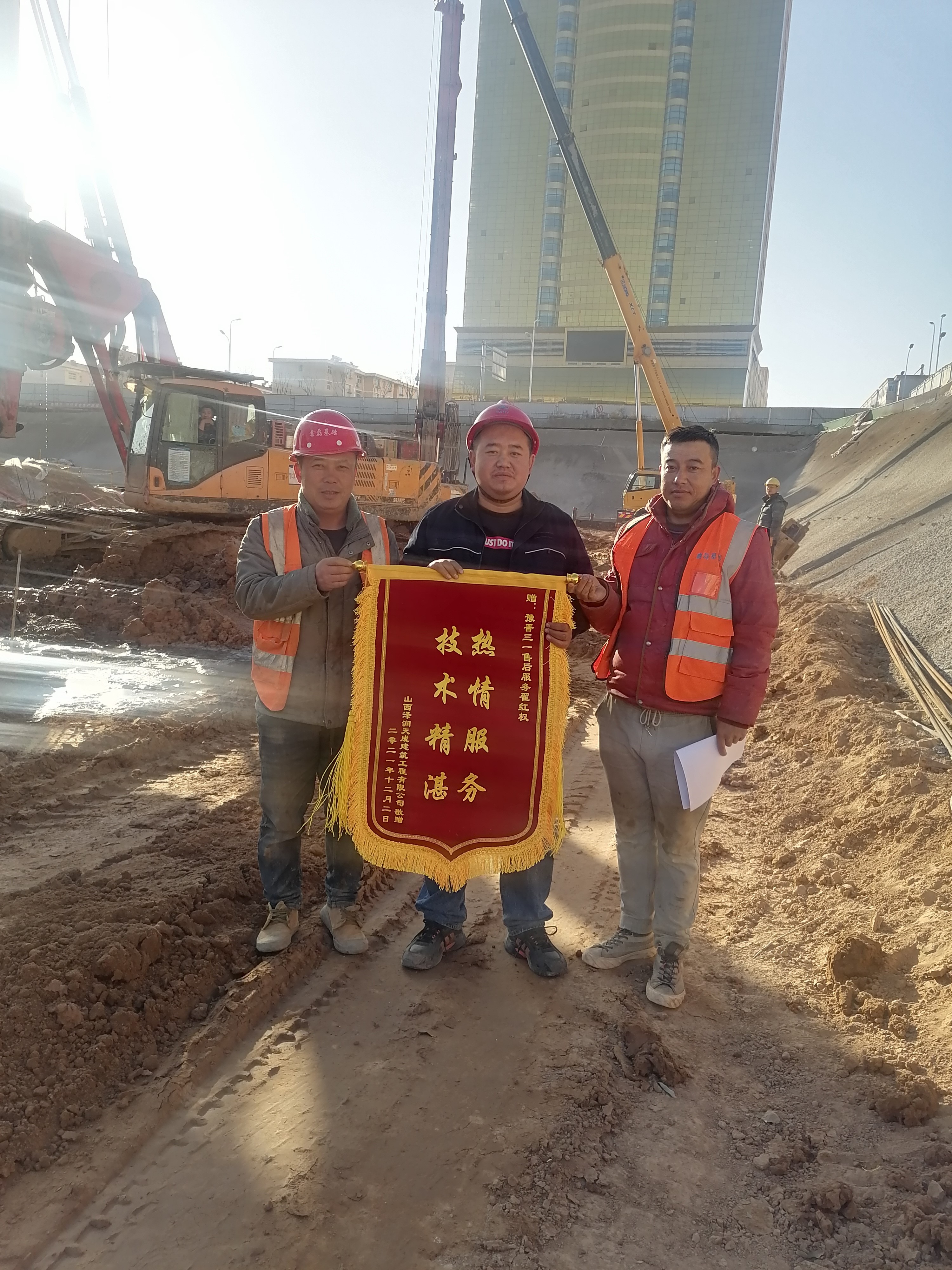 该客户是我司大客户,现有设备五台全是我司设备,经过这几年售后服务工作,客户一直对三一售后服务非常认可,日常点点滴滴的服务,不知多少次让客户感动,为此客户赠送锦旗一面。