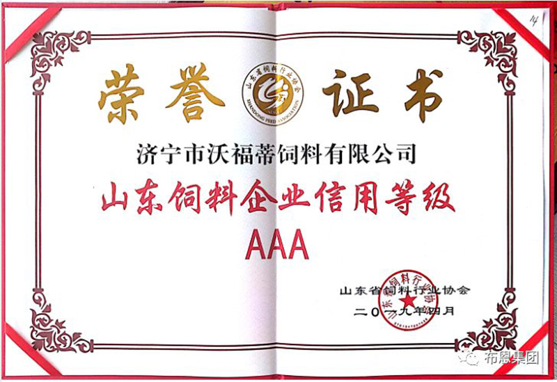 為進一步加強我省飼料生産企業的管理,規範市場行為,營造遵法、自律、誠實、守信的行業競争環境,逐步建立飼料行業信用體系和信用管理運行機制,樹立飼料行業企業信用形象,塑造企業信用品牌,提升企業綜合競争力,降低社會信息成本,創建良好的市場經濟秩序和信用環境。山東省飼料行業協會受山東省畜牧獸醫局委托,對山東省飼料生産企業開展了信用等級評價活動。布恩集團旗下:日照市惠生飼料有限公司、濟甯市沃福蒂飼料有限公司榮獲飼料企業信用等級AAA級榮譽。
