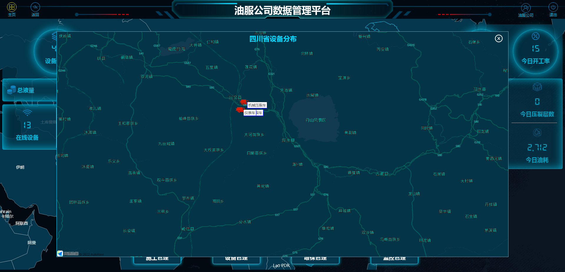 三是施工管理:施工管理可以查看客户施工曲线,包括开工率、工作时长、液量、油耗等。维保管理可以查看设备待保养信息与已保养信息,设备报警信息与已处理报警信息。客户可以查看施工曲线,并可以根据日、周、月进行切换选择,根据施工曲线掌握生产情况并作出调整。
