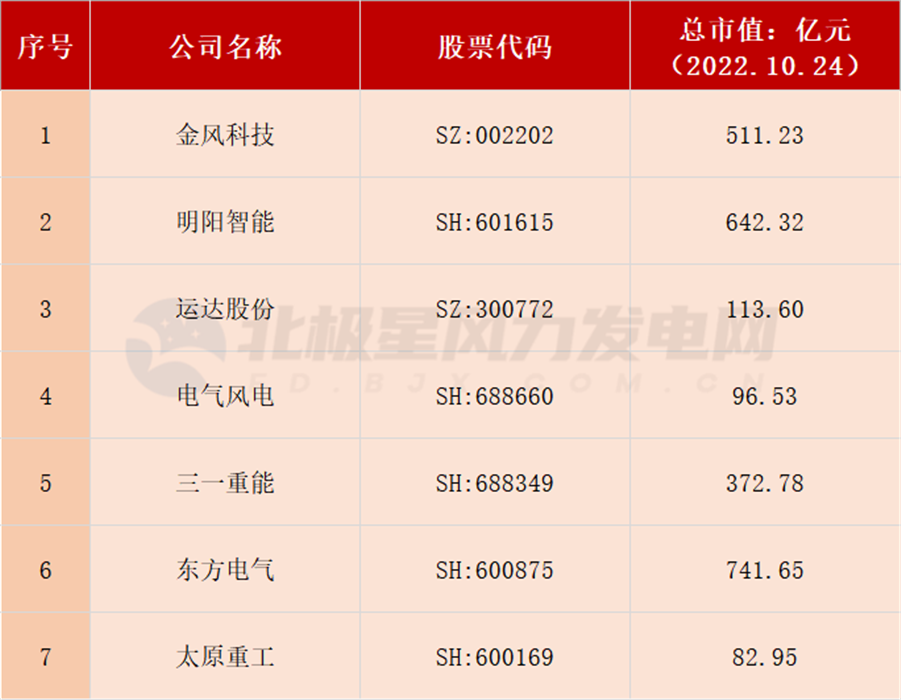 目前已成功上市的风电整机厂家有7家,分别为金风科技、明阳智能、电气风电、东方电气、运达股份、三一重能、太原重工,此外,中国船舶集团新能源资产组合中,上市公司中船科技拟91.98亿元收购中国海装等风电新能源资产。