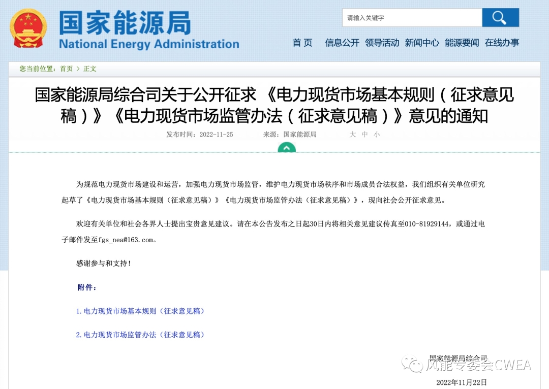 国家能源局:电力现货市场基本规则和监管办法2个文件征求意见