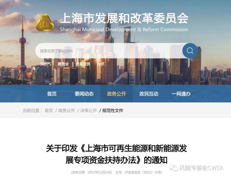 近日,上海市发改委发布关于《上海市可再生能源和新能源发展专项资金扶持办法》的通知,明确支持海上风电项目,包括在上海市管辖海域范围建设的近海海上风电项目和在国家管辖海域范围建设并在上海市消纳的深远海海上风电项目。
