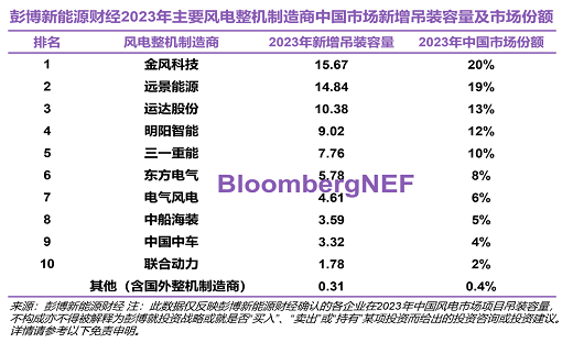 BNEF重磅发布 | 2023年中国风电整机制造商新增吊装容量排名