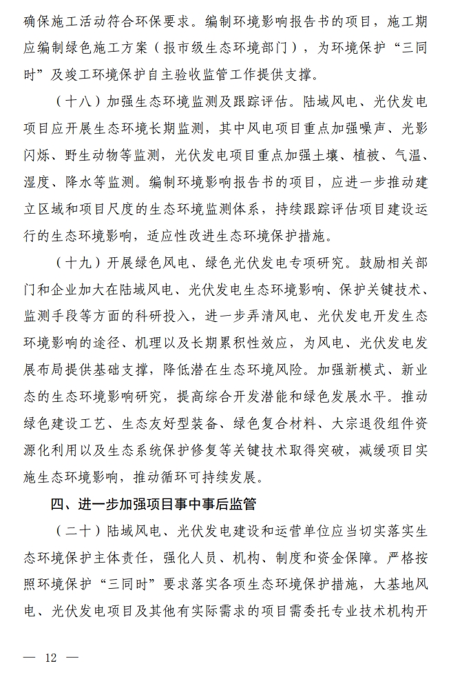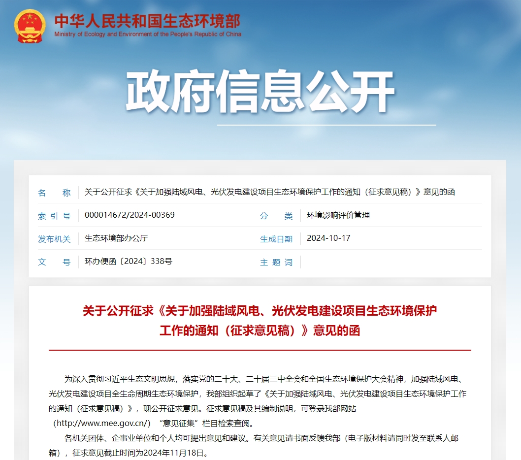 北极星风力发电网获悉,10月17日,生态环境部发布的《关于加强陆域风电、光伏发电建设项目生态环境保护工作的通知(征求意见稿)》,对陆域风电、光伏发电项目的环境评价工作提出了多方面具体要求。