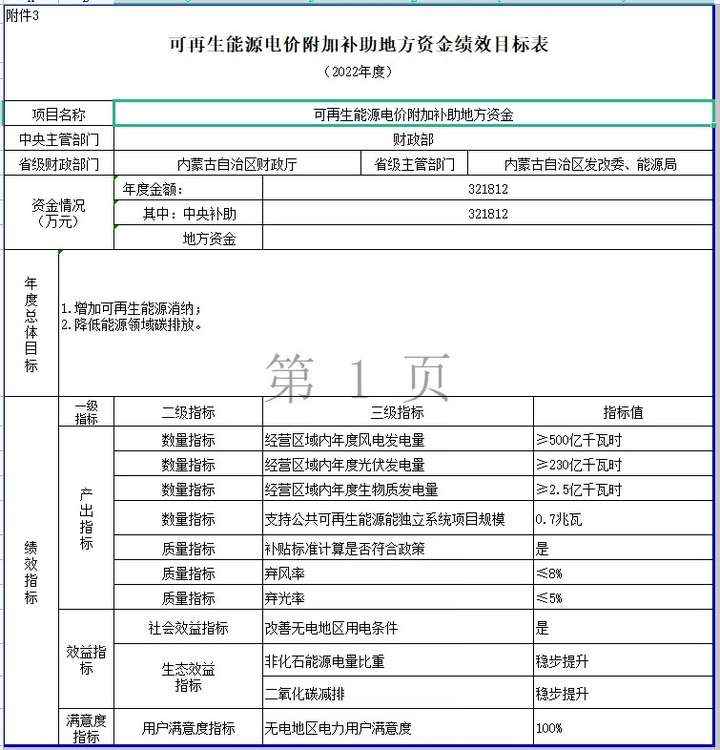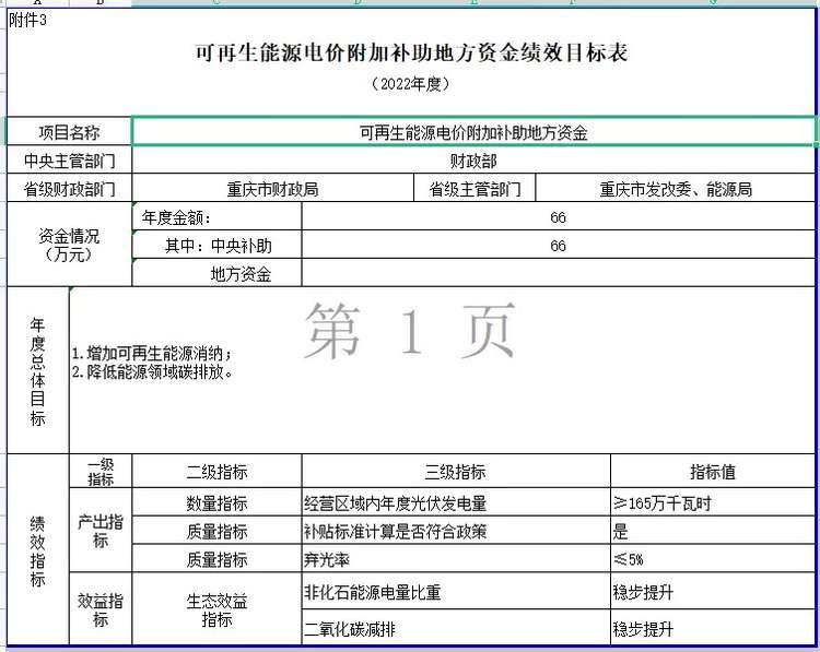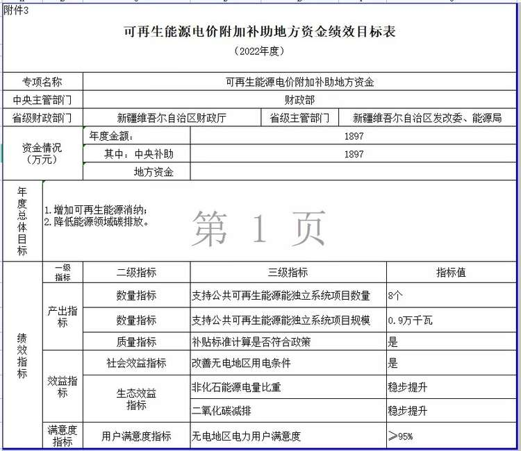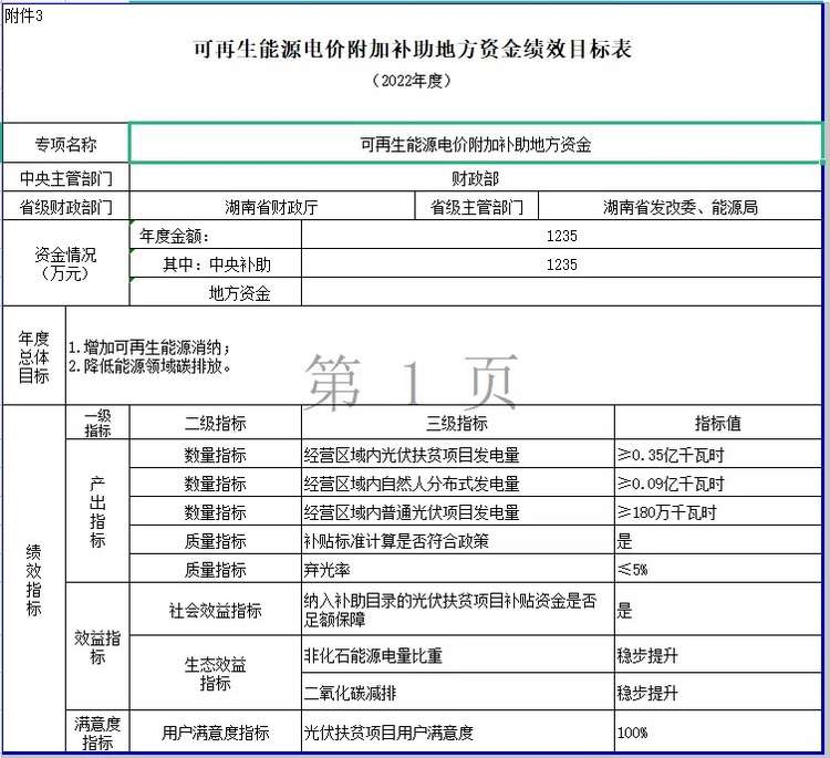 四、为保障资金安全,提高资金使用效率,电网企业应按年度对补贴资金申请使用等情况进行全面核查,必要时可聘请独立第三方。为深入贯彻落实《中共中央 国务院关于全面实施预算绩效管理的意见》,切实提高财政资金使用效益,请你单位在组织预算执行中对照绩效目标(附件3)做好绩效监控,确保年度绩效目标如期实现。同时,你单位应按规定及时上报绩效自评结果,绩效自评结果将作为分配预算资金的重要依据。