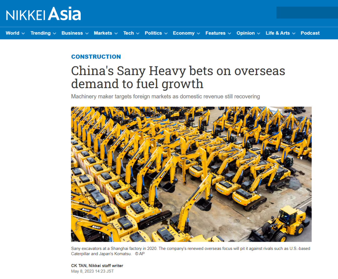 近日,日媒《日经亚洲》刊发《China's Sany Heavy bets on overseas demand to fuel growth》(三一重工寄望海外需求助推增长)一文,关注报道三一国际化战略推进步伐。