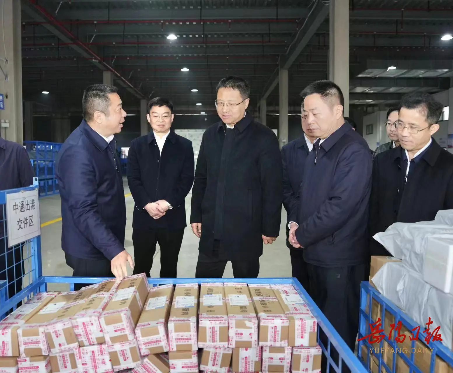 3月5日,谢卫江在汨罗市客货邮分拣中心调研农村客货邮融合发展情况。