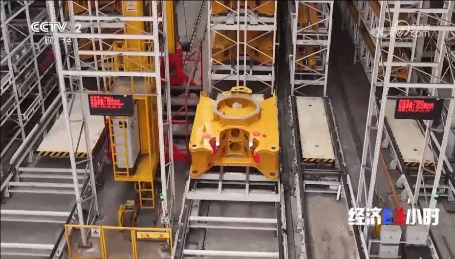 三一重工泵路事业部运营副总经理 刘文龙:现在从我们智能立库出来的,是我们71米泵车最大的零件——转塔。它即将运送到我们生产现场去组装。