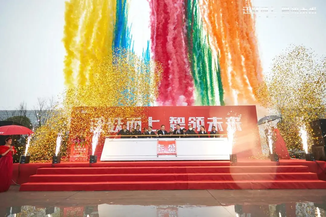 乔迁仪式正式开始,在三一重卡全体员工见证下,梁林河、张红松、周万春、蒋建军、朱宏、张大明、刘竹林等领导共同推动启动杆,五彩礼炮响彻智联重卡产业园,掌声雷动,共贺三一重卡乔迁大吉,宏图大展!