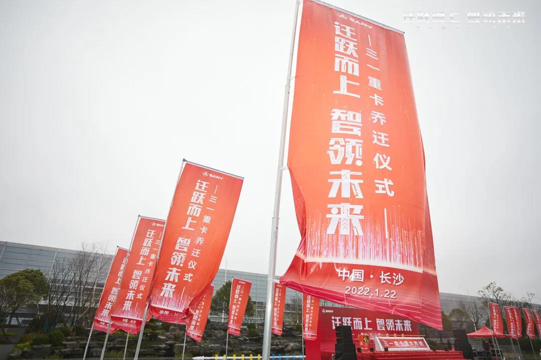 2021年12月10日,智联重卡产业园首批整车批量下线,标志着产业园正式全面投产。2022年1月11日,“三一无人电动化项目”接受观摩检阅。1月22日盛大乔迁。全新产业园智能智造实力、办公环境全面升级。拥有3个超级立体库,超700台AGV,224个机器人。办公面积增加2.5倍至9700平米,工位增加至1028个。
