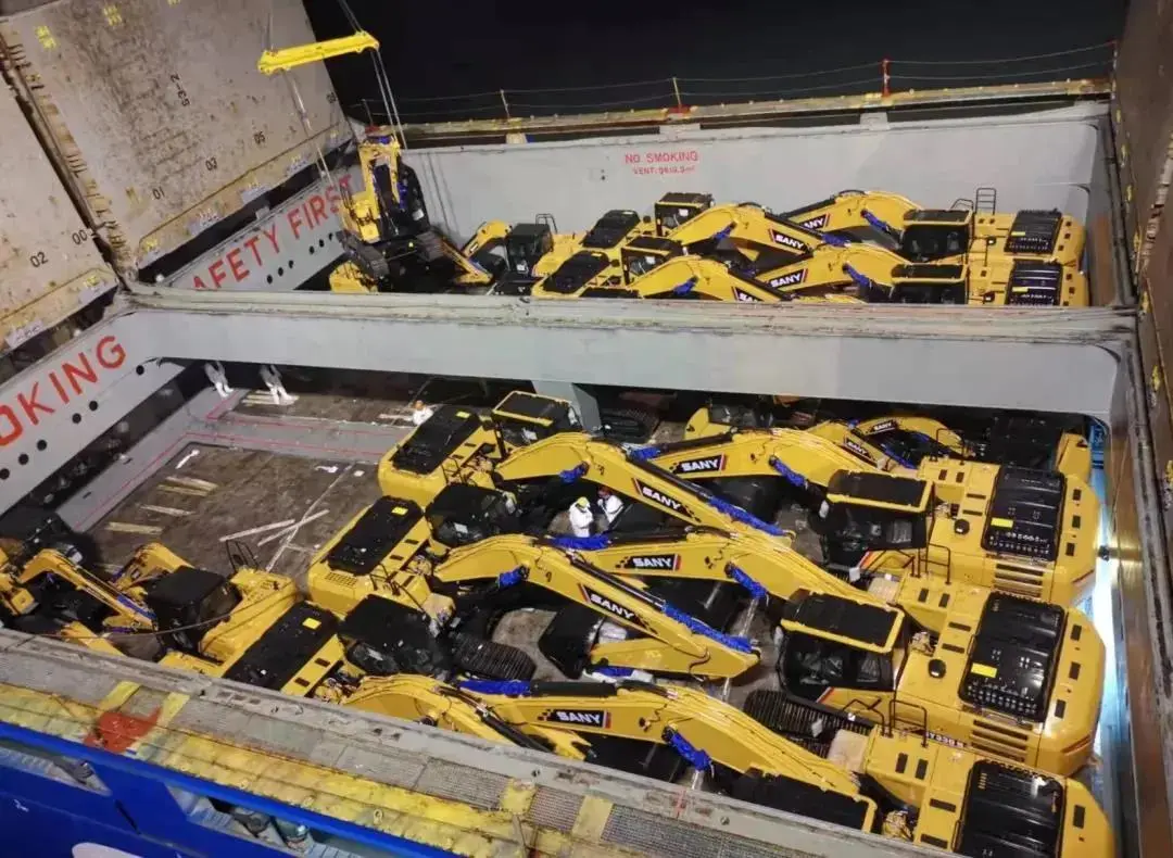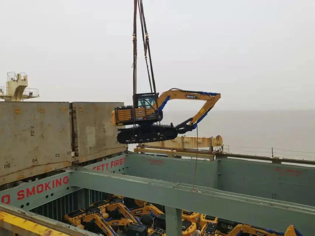 春节前夕,为确保海外订单能够得到有力保障,三一积极协调运力和舱位,联合海运公司开设专班快线,经过数日紧张作业,圆满完成所有318台、约23000多方装备的装载任务。