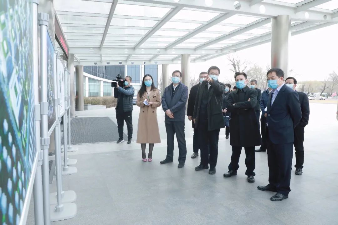 向文波通过展板向甘靖中一行介绍了三一回龙观园区建设规划,甘靖中仔细观看了园区设计方案,表示对地标性园区建设充满期待。