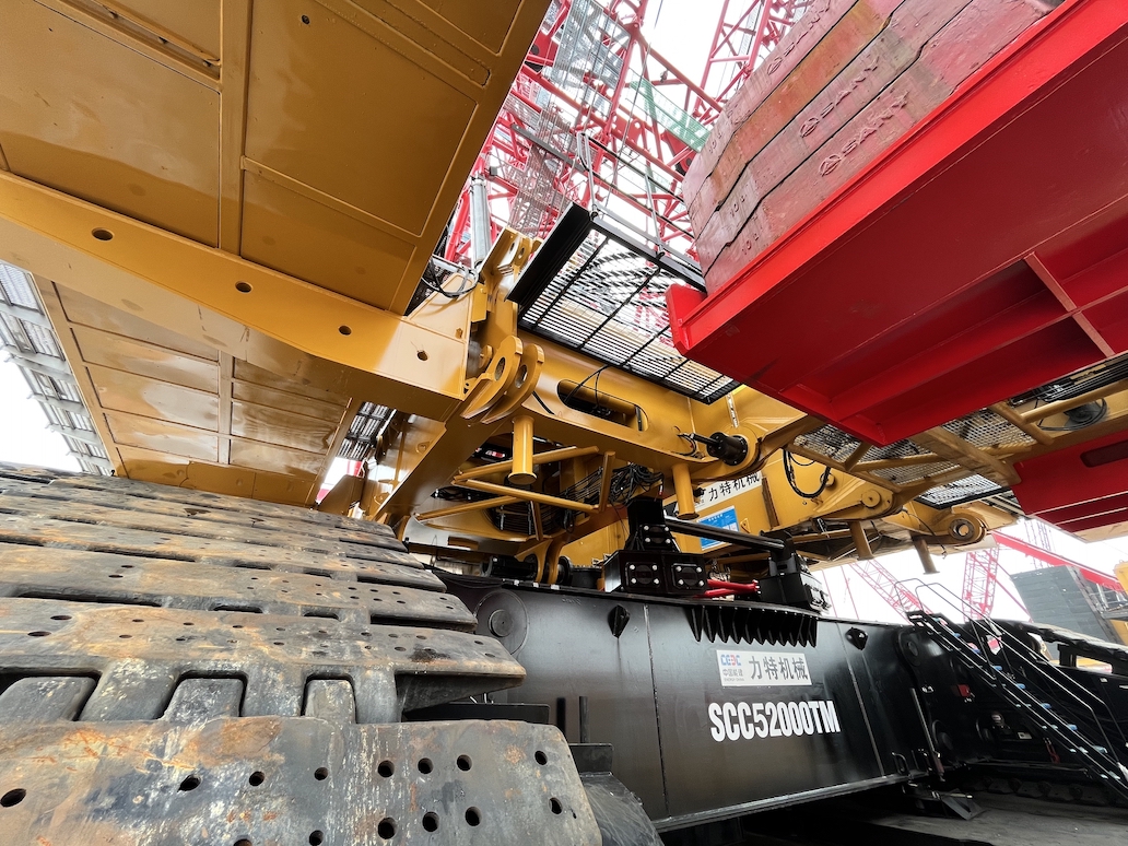 SCC52000TM由一台2000吨和一台1600吨的履带起重机改装组合而成,是国内首台投产及应用的“二合一”履带起重机。最大起重量3000吨,主要满足石化罐体、核电穹顶等大型化吊装的需求。