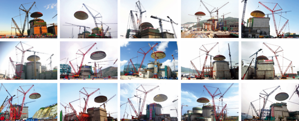 十几年来,三一履带起重机先后成功承接了福清核电站、阳江核电站、秦山核电站、广东台山核电站等国内著名的核电站的穹顶吊装作业共20余次,书写了国产履带起重机吊装核岛穹顶的辉煌业绩。