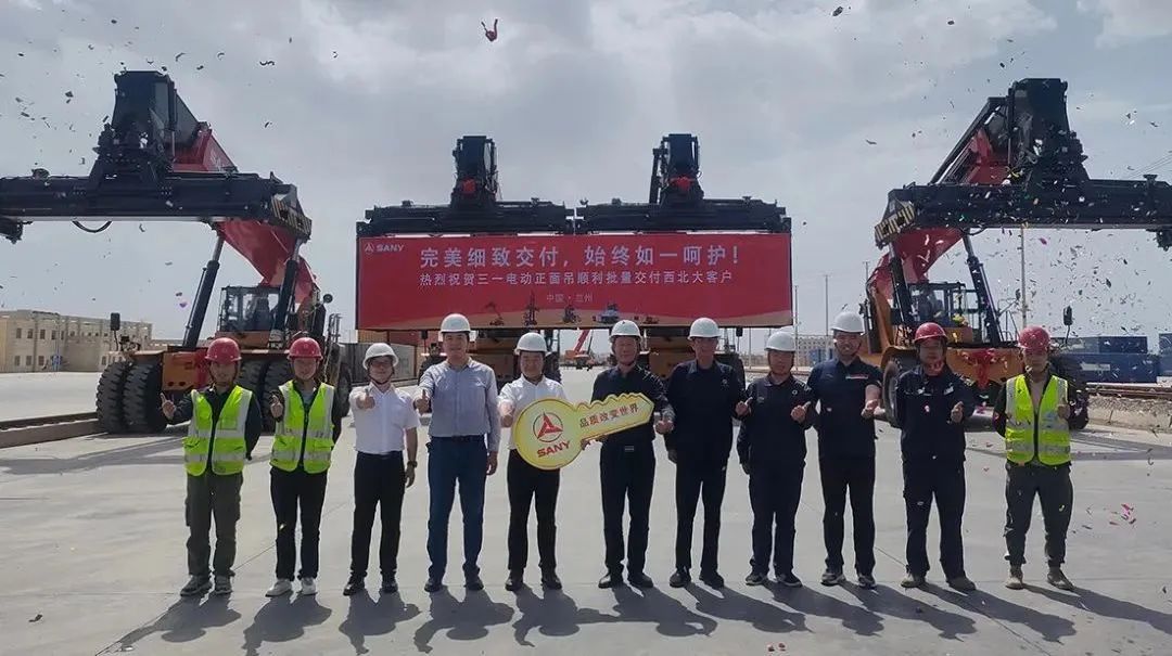 目前,三一在行业率先已推出电动正面吊、电动堆高机、电动集卡、电动抓钢(料)机、电动重叉等全系列电动港口设备,市场销量领先。