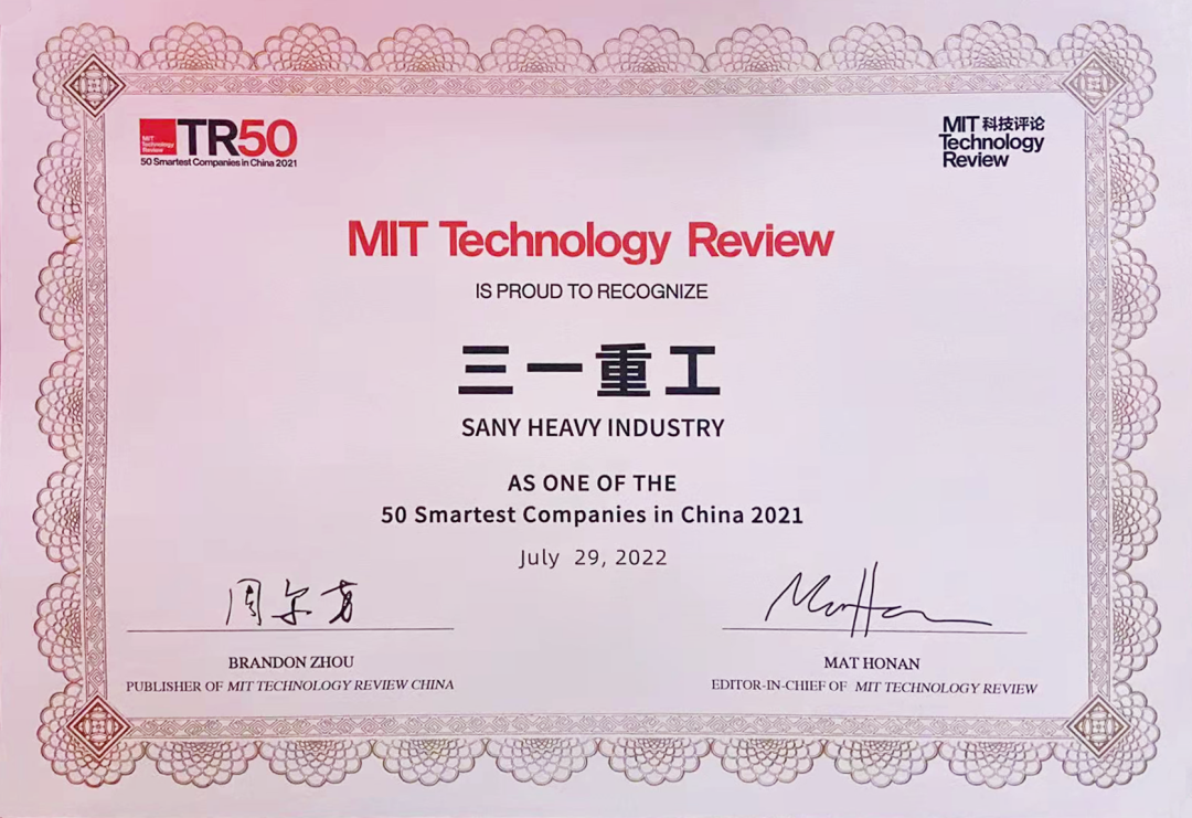 7月29日,《麻省理工科技评论》公布年度“50家聪明公司(TR50)”,以此洞见未来科技大势,在榜上诸多探索生命科学、宇宙空间、量子计算、脑机接口等领域的高科技企业当中,三一重工作为工程机械行业唯一上榜企业,格外引人瞩目。
