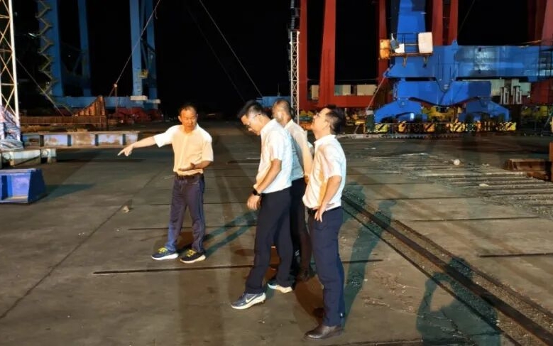 23日晚,三一海工董事长伏卫忠组织对防台各项工作进行全面复查,确保万无一失。