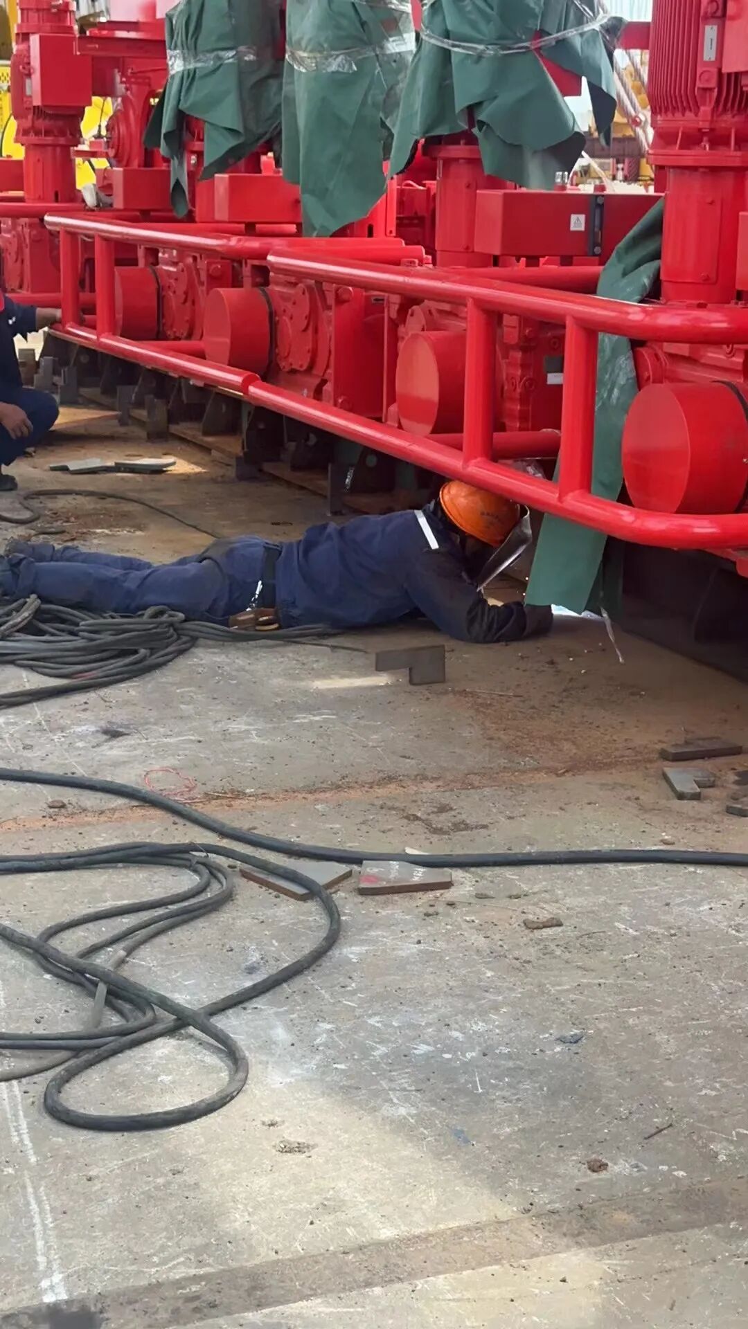 制造部门对无法移入室内的每一台设备、每一个零部件进行焊接加固底座、钢丝绳捆绑、增加配重等,防台工作直至深夜,确保客户订单设备的安全。
