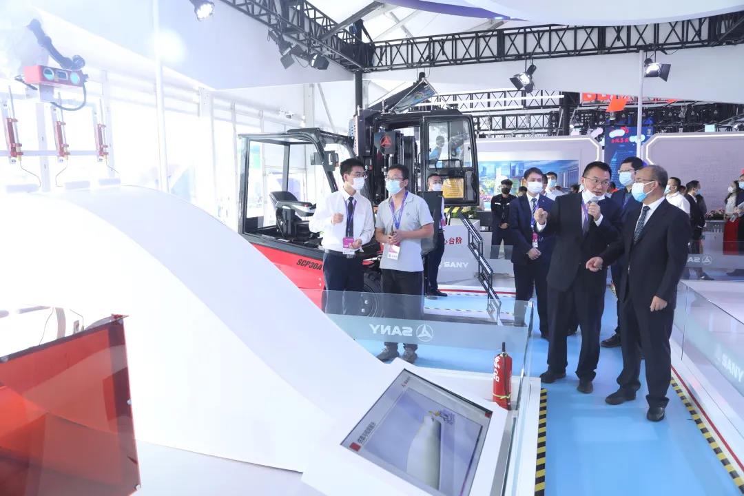 开幕式期间,山西省副省长于英杰、西藏自治区副主席孟晓林等来到三一展区,仔细听取三一机器人科技有限公司总经理郭承志介绍相关情况,并不时询问项目的技术特点及市场推广进展。