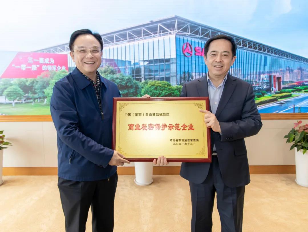 1月12日,中国(湖南)自由贸易试验区商业秘密保护示范单位授牌仪式在三一长沙产业园举行,经湖南省市场监督管理局审定,三一集团被评为湖南省首批商业秘密保护示范企业。