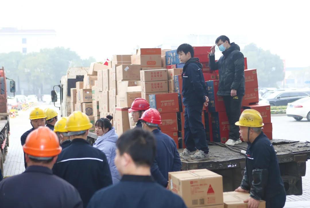 工程车辆事业部的梁巍然抱着满满大礼包,喜笑颜开。“公司把过年吃的坚果、红枣、糖果等全都备齐了,又可以过一个舒心的年了。”