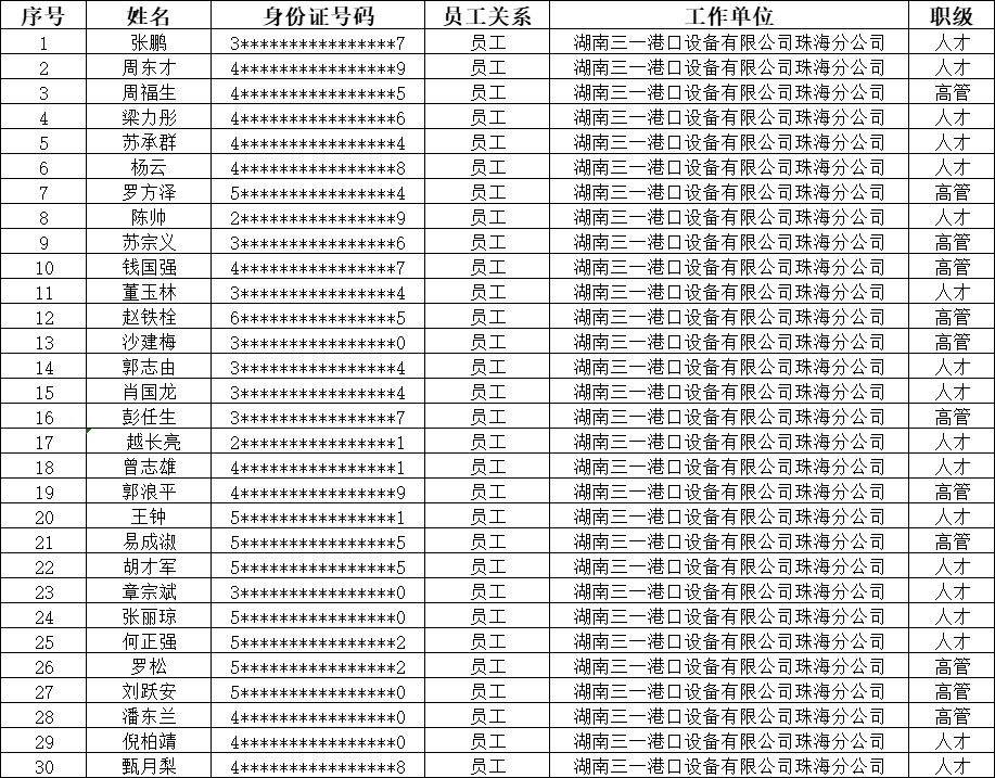 为增加员工归属感,我司开发位于珠海市金湾区平沙镇铭恩路31号【三一蓝海花园项目】用于引进行业人才,为保障房住不炒的居住用途及员工购房资格合规性,根据我司制定的《关于三一蓝海花园购房资格管理办法》,现对购房名单做如下公示:
