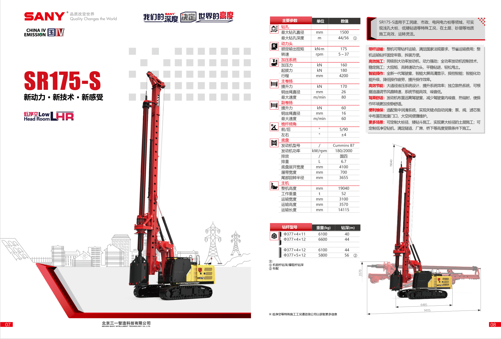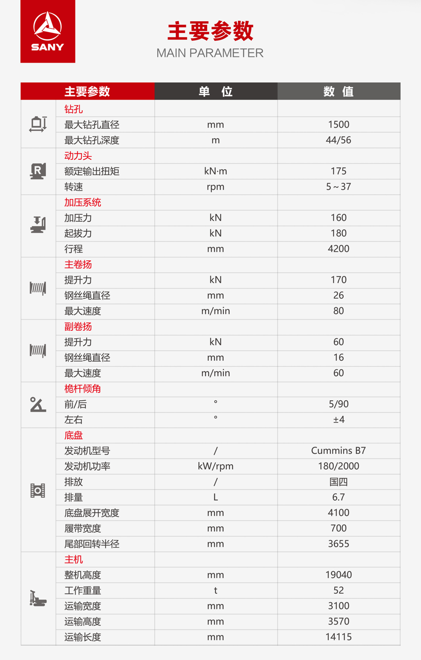 SR175-S适用于工民建、市政、电网电力桩等领域,可实现浅孔大桩、低矮钻进等特殊工况,在土层、砂层等地质 施工高效,运转灵活。