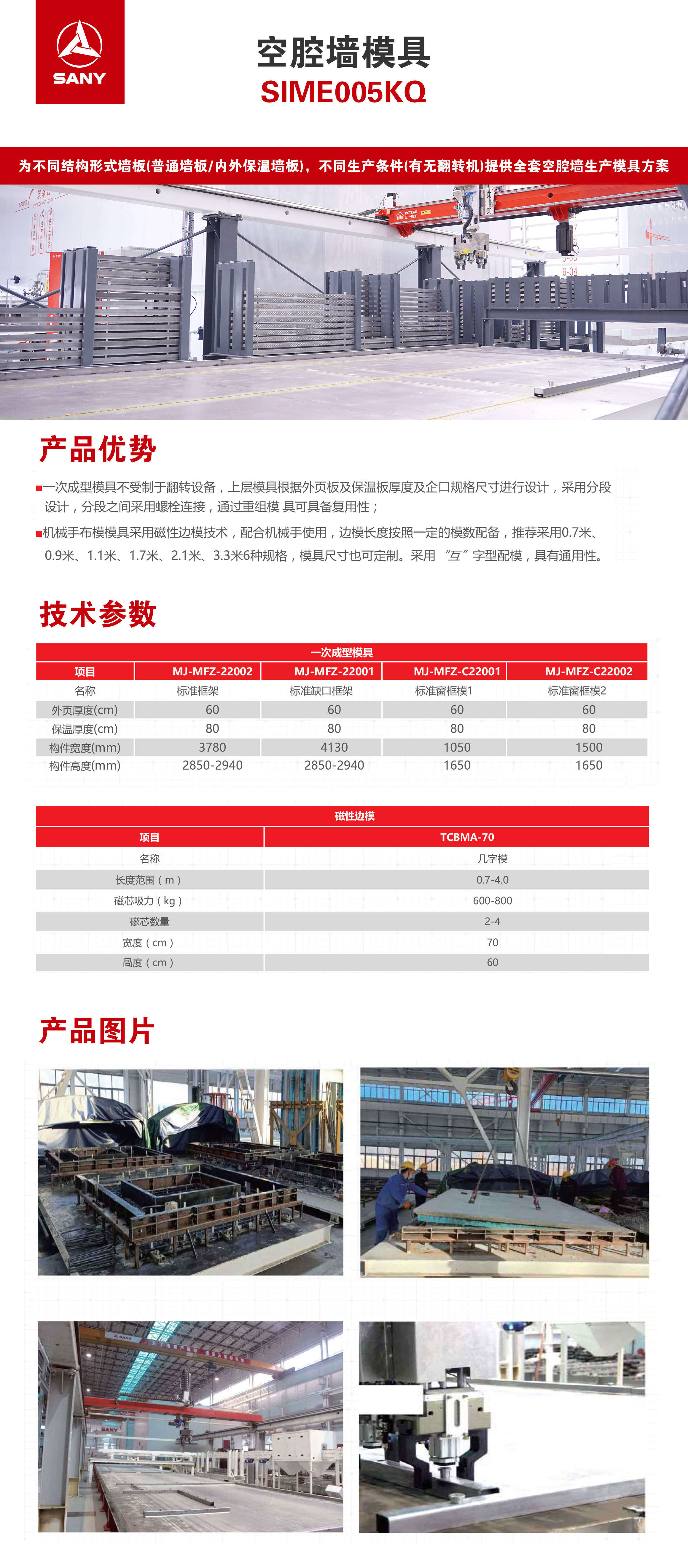 为不同结构形式墙板(普通墙板/内外保温墙板),不同生产条件(有无翻转机)提供全套空腔墙生产模具方案