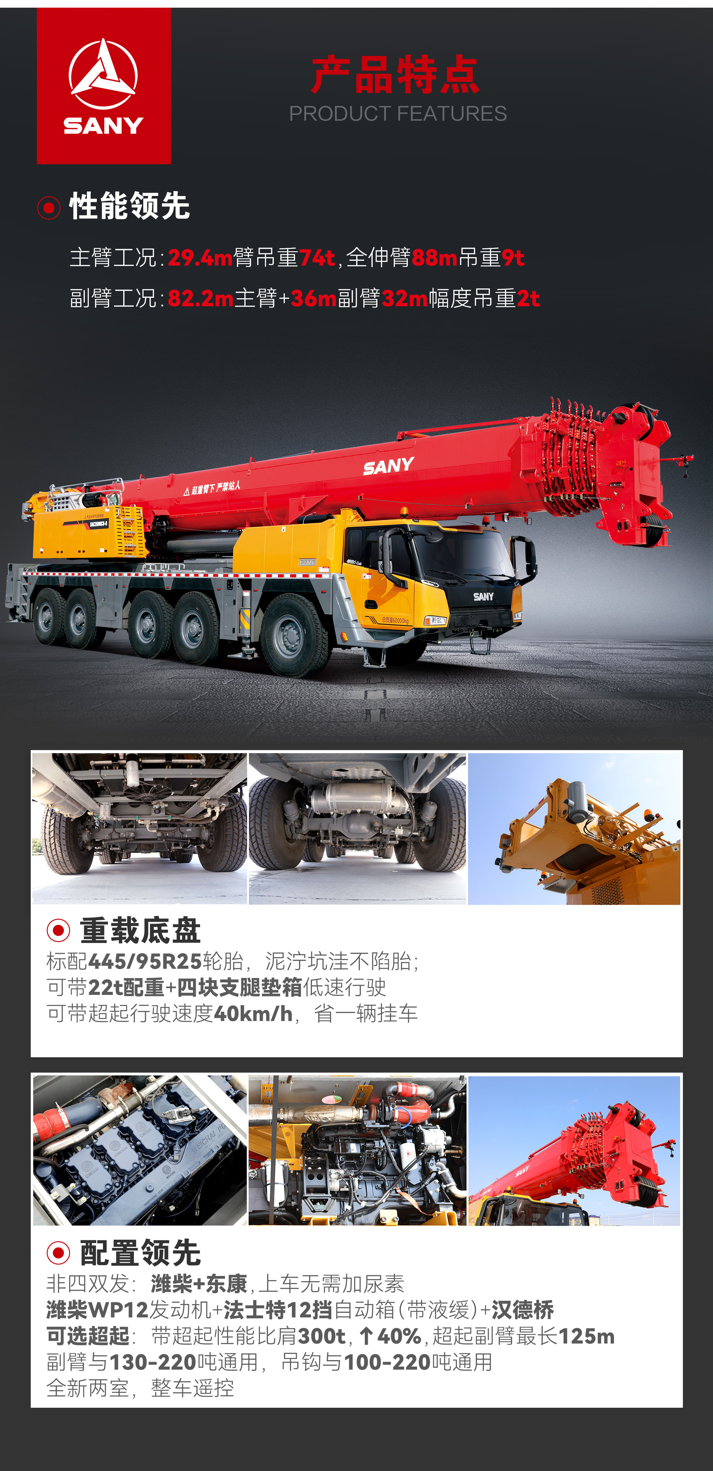 可选超起:带超起性能比肩300t,↑40%,超起副臂最长125m