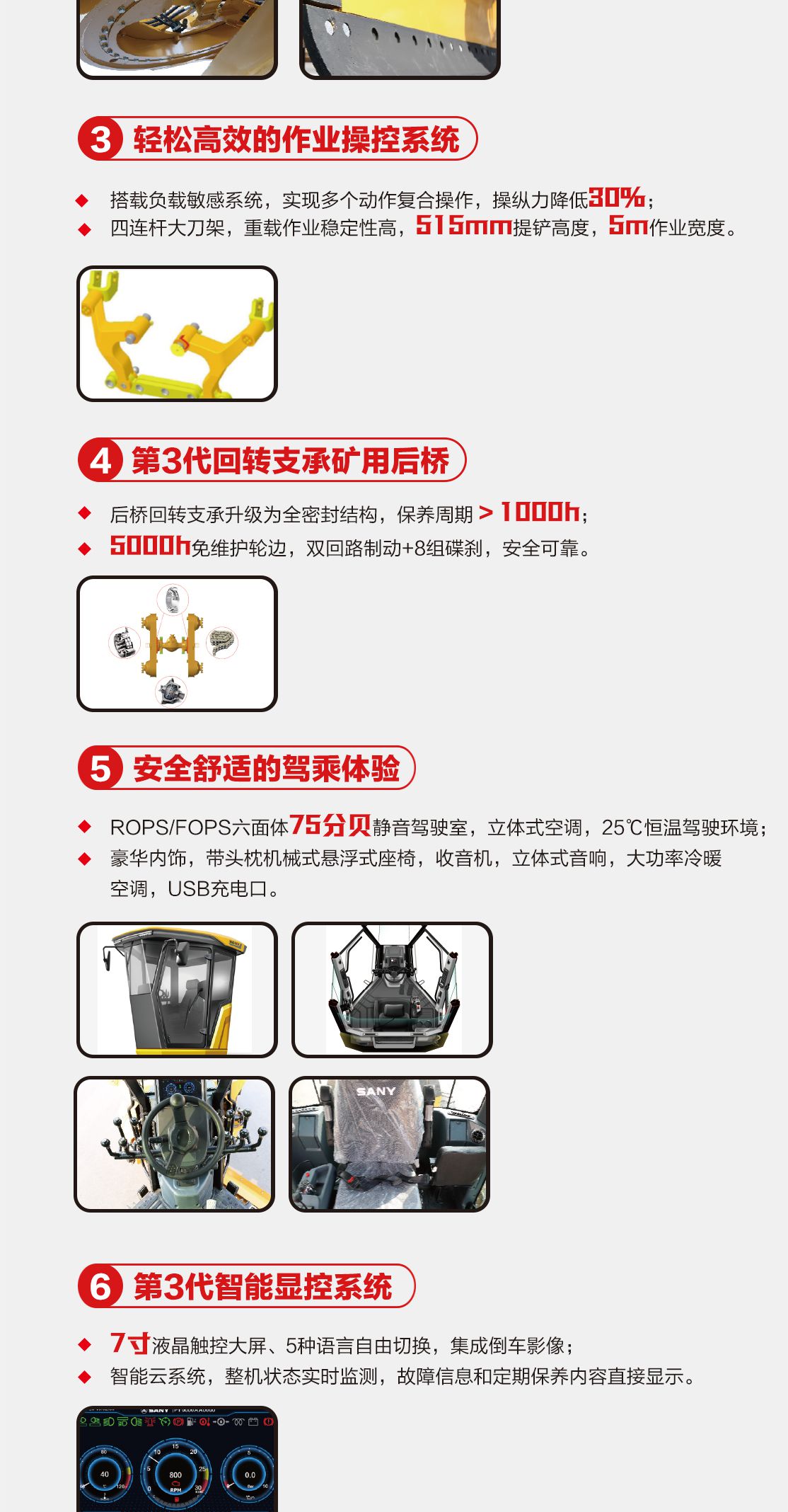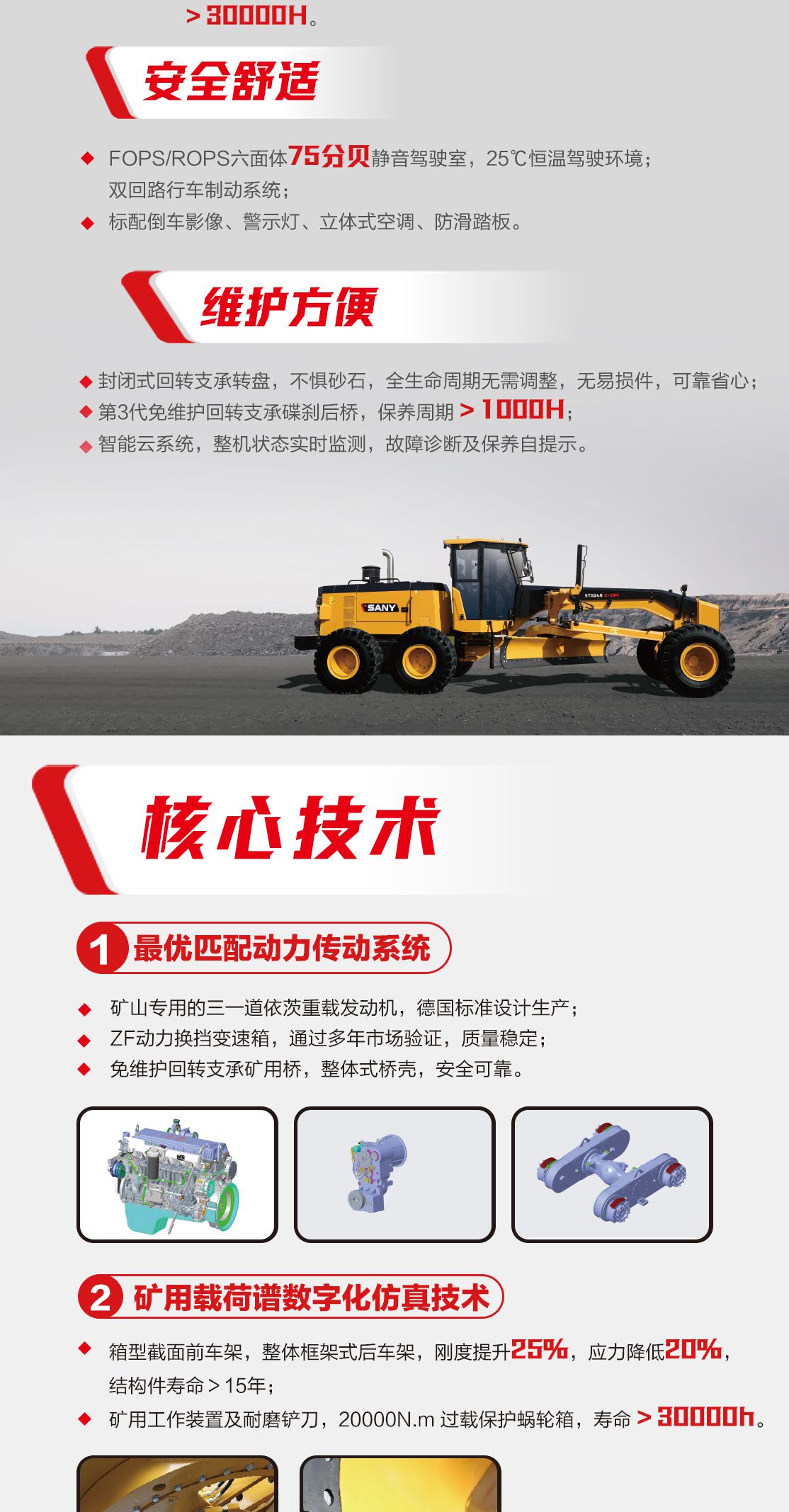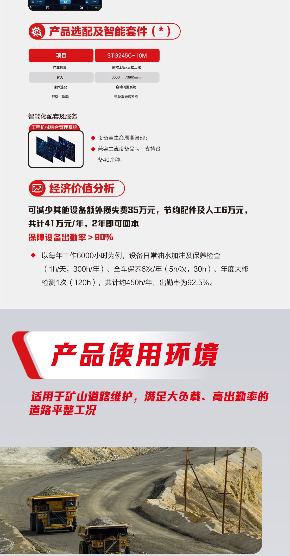 矿山专用的 245 马力重载发动机,牵引力大于同类产品 10%;